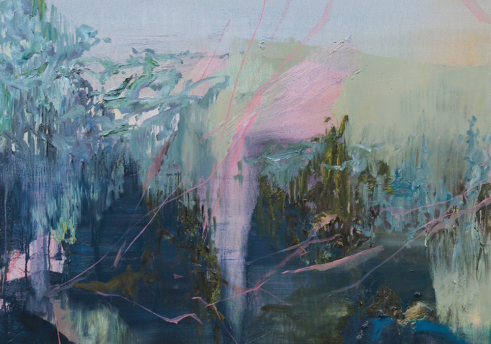 Joel Åkerman ser en räv i ögonvrån som upplöses till en skugga. I skogen upplever han förskjutningar av sin upplevelse. På samma sätt vill Joel förskjuta delar av sitt organiska och naturnära formspråk i färg, yta, bildrum och komposition. I sin första soloutställning skapar han ett gränsland med nya förutsättningar.